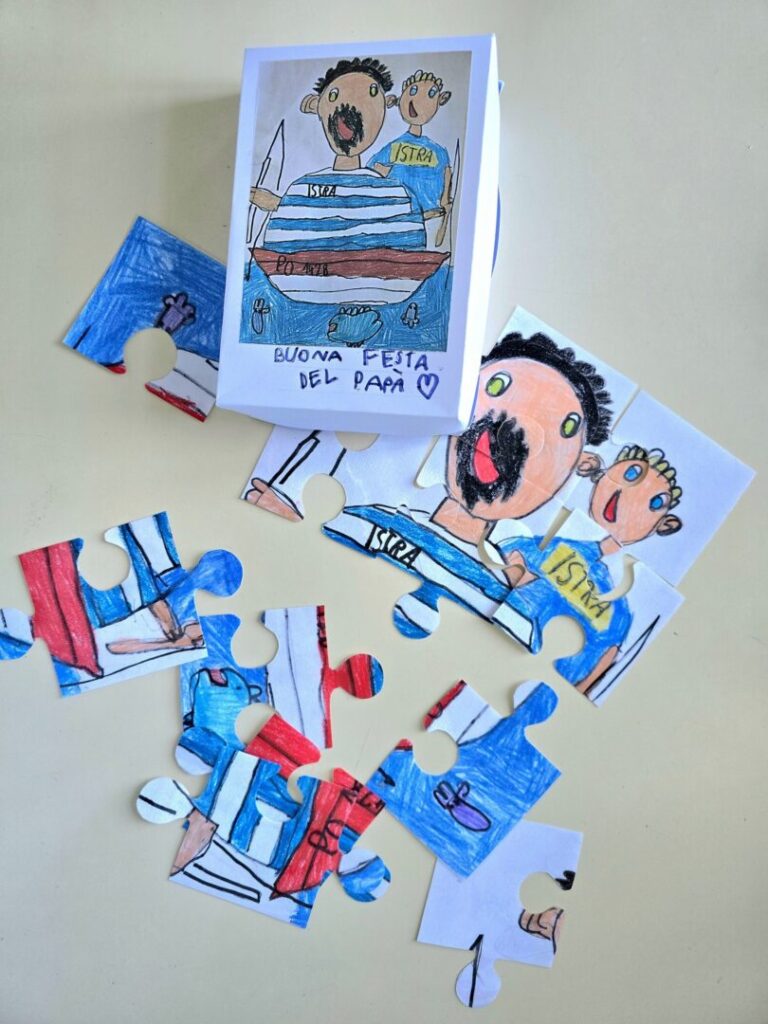 La classe prima ha realizzato dei puzzle con i disegni dei papà: perché, proprio come l’ultimo pezzo che completa il gioco, ogni papà è una presenza insostituibile nella vita dei propri figli.