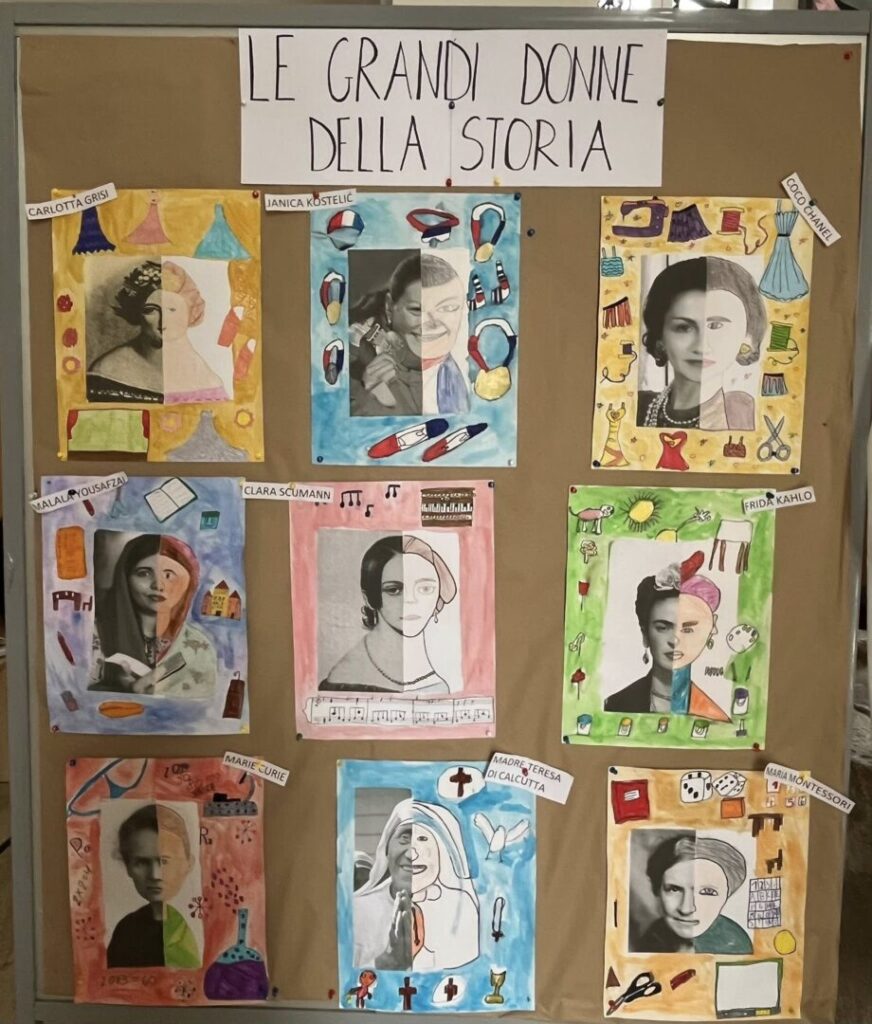 Durante tutta la settimana, le aule si sono riempite di riflessioni e colori. Abbiamo parlato insieme del ruolo fondamentale della Donna nella società — dalle grandi figure della storia alle eroine del nostro quotidiano.