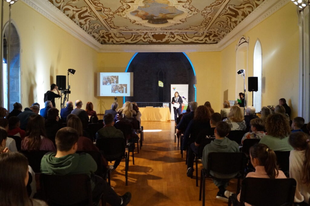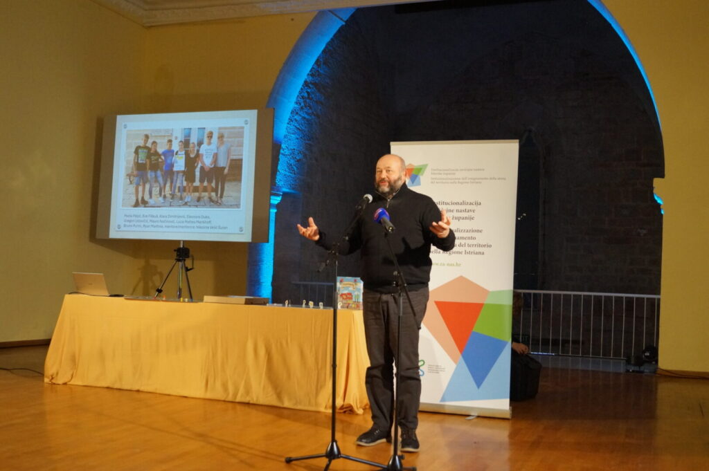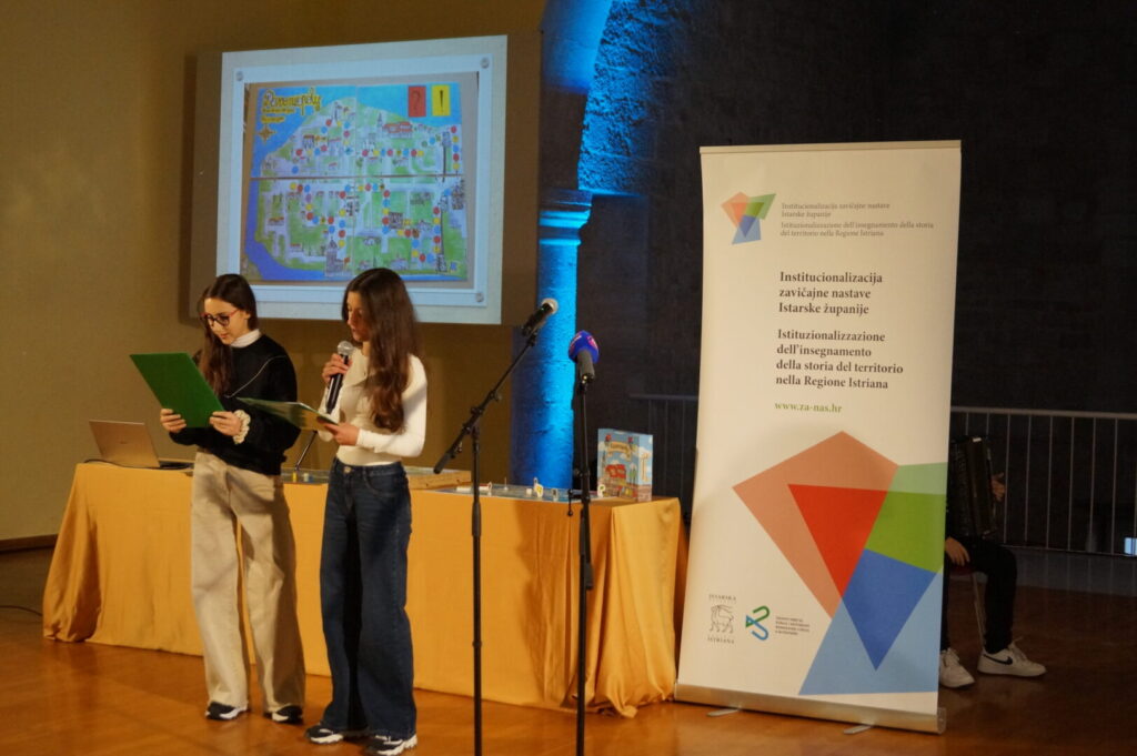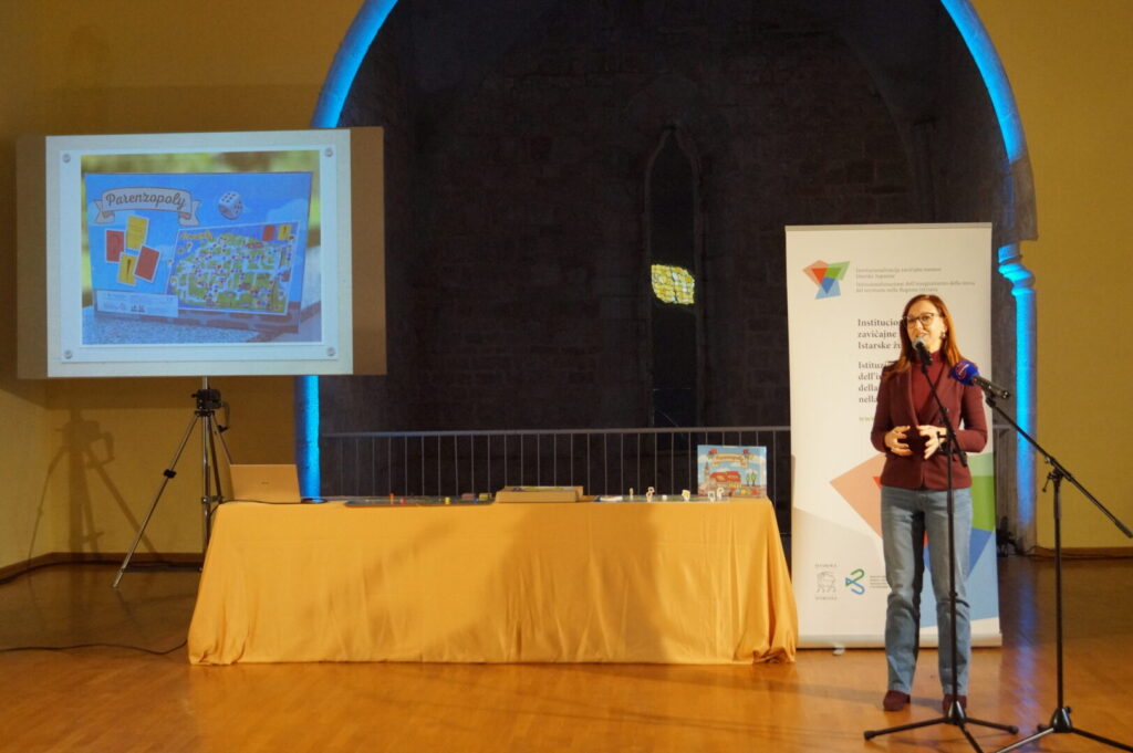 Bellissima e riuscitissima manifestazione oggi presso la Sala della Dieta istriana alla quale hanno partecipato esponenti della Città di Parenzo, della Regione istriana e delle istituzioni cittadine. La direttrice Ester Zarli ha salutato i presenti e si è detta orgogliosa del risultato del lavoro degli alunni della scuola, realizzato nell’ambito del Progetto della Regione sull’istituzionalizzazione della storia del territorio. La direttrice ha confermato che “Parenzopoly non è soltanto un gioco, un divertimento, ma un vero e proprio viaggio nel nostro territorio, nella regione e nelle sue peculiarità, ispirato dalla storia che aleggia e si respira in ogni angolo della nostra città.” Gli alunni hanno dimostrato che la scuola è un luogo dove la conoscenza si intreccia con la passione e con la voglia di costruire insieme, e quando si lavora con il cuore, si possono ottenere risultati straordinari, come questo.