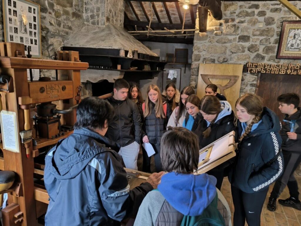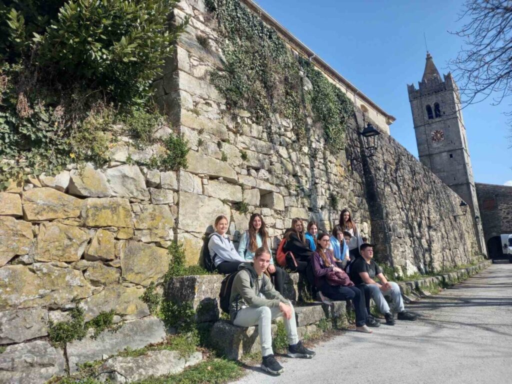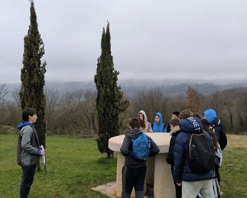 Il 5 marzo 2026 gli alunni delle classi VII e VIII, accompagnati dall’insegnante Melani Ivetić Užila e la bibliotecaria Sara Blažević, hanno partecipato alla lezione sul campo “Il viale dei sacerdoti glagolitici” che unisce le città di Rozzo e Colmo, luogo dove gli alunni erano in diretto contatto con il nostro patrimonio glagolitico.